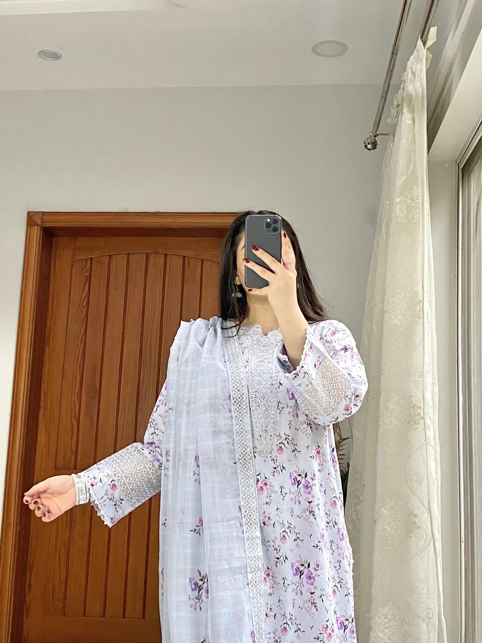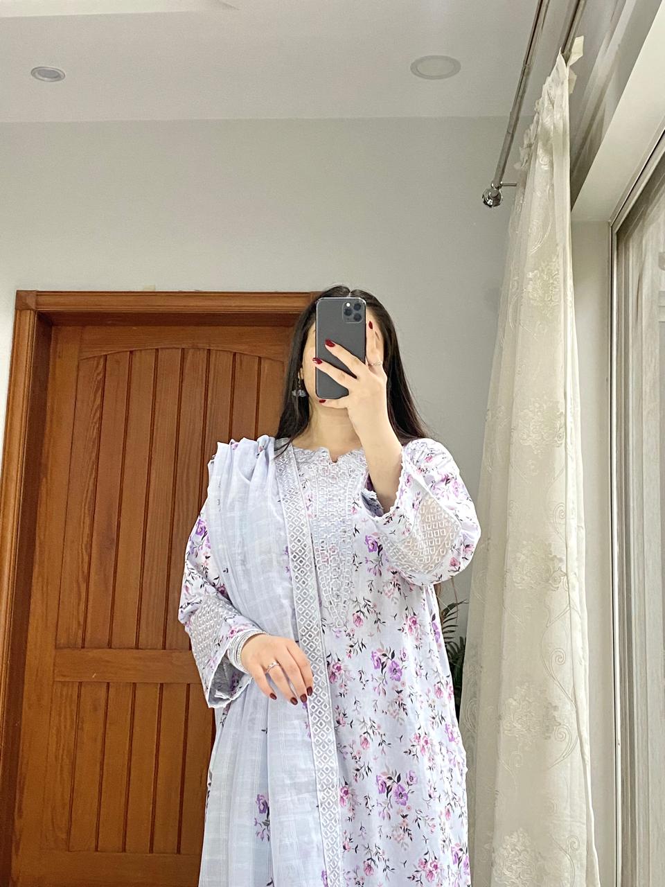 The 𝐫𝐞𝐚𝐝𝐲-𝐭𝐨-𝐰𝐞𝐚𝐫 𝐞𝐦𝐛𝐫𝐨𝐢𝐝𝐞𝐫𝐞𝐝 𝐕𝐨𝐢𝐥 𝐃𝐮𝐩𝐚𝐭𝐭𝐚 𝐚𝐧𝐝 𝐢𝐧𝐭𝐫𝐢𝐜𝐚𝐭𝐞 𝐛𝐨𝐫𝐝𝐞𝐫𝐬 add a luxurious finish — making this outfit perfect for festive gatherings, casual chic outings, or day events.